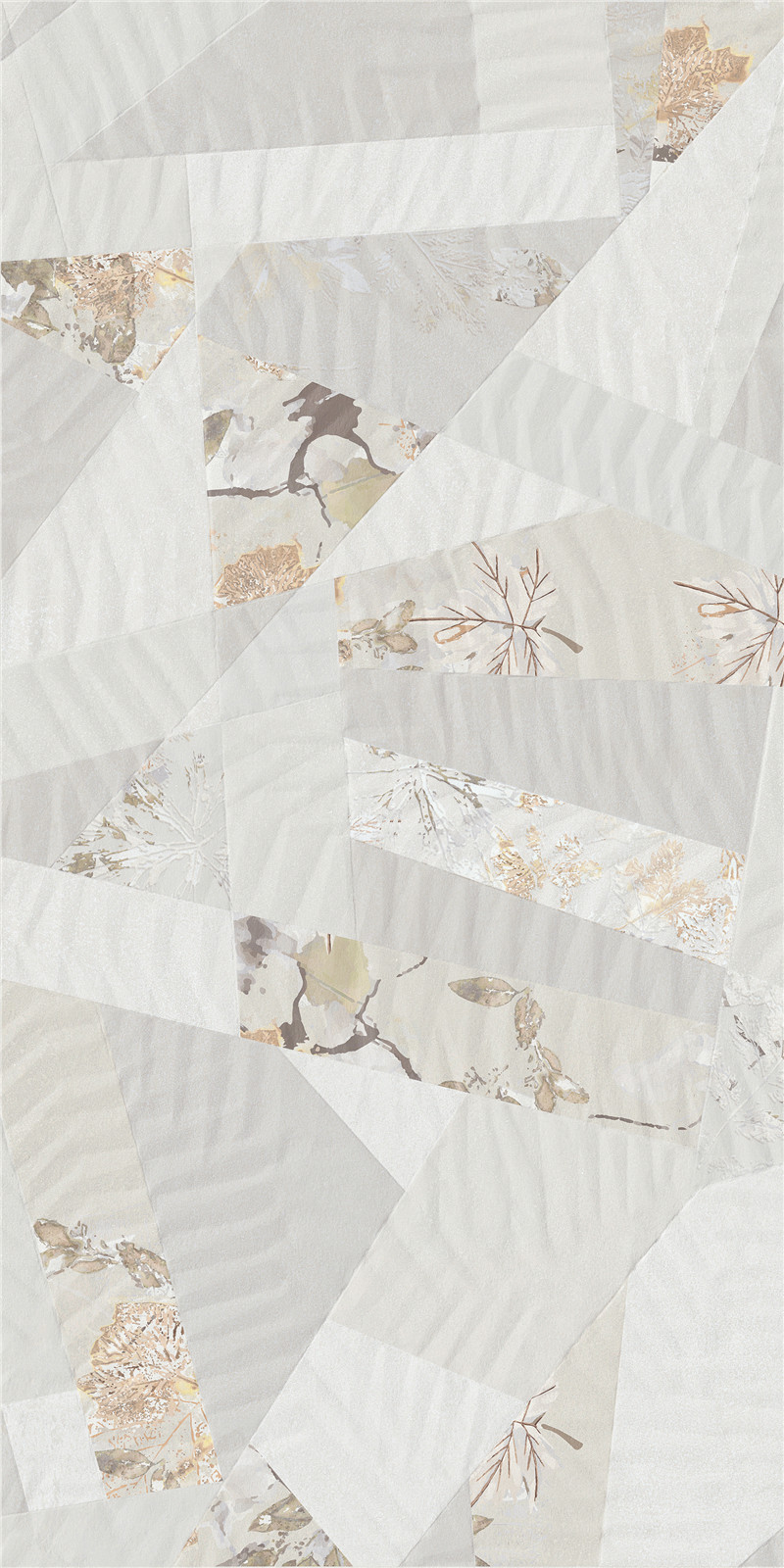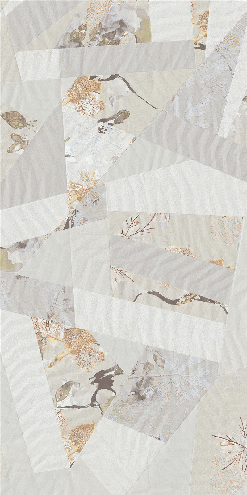 幾何塊面交織鎏金葉脈,白灰基底漫溢暖煦光暈。磚面似疊夢(mèng)詩(shī)箋,輕奢與藝術(shù)共舞,為空間織就璀璨靜謐的美學(xué)幻境,盡顯雅致詩(shī)意。