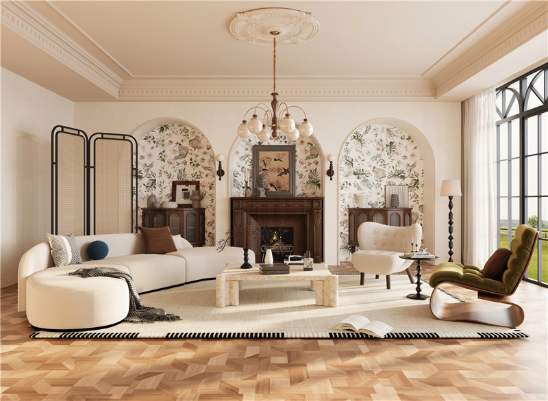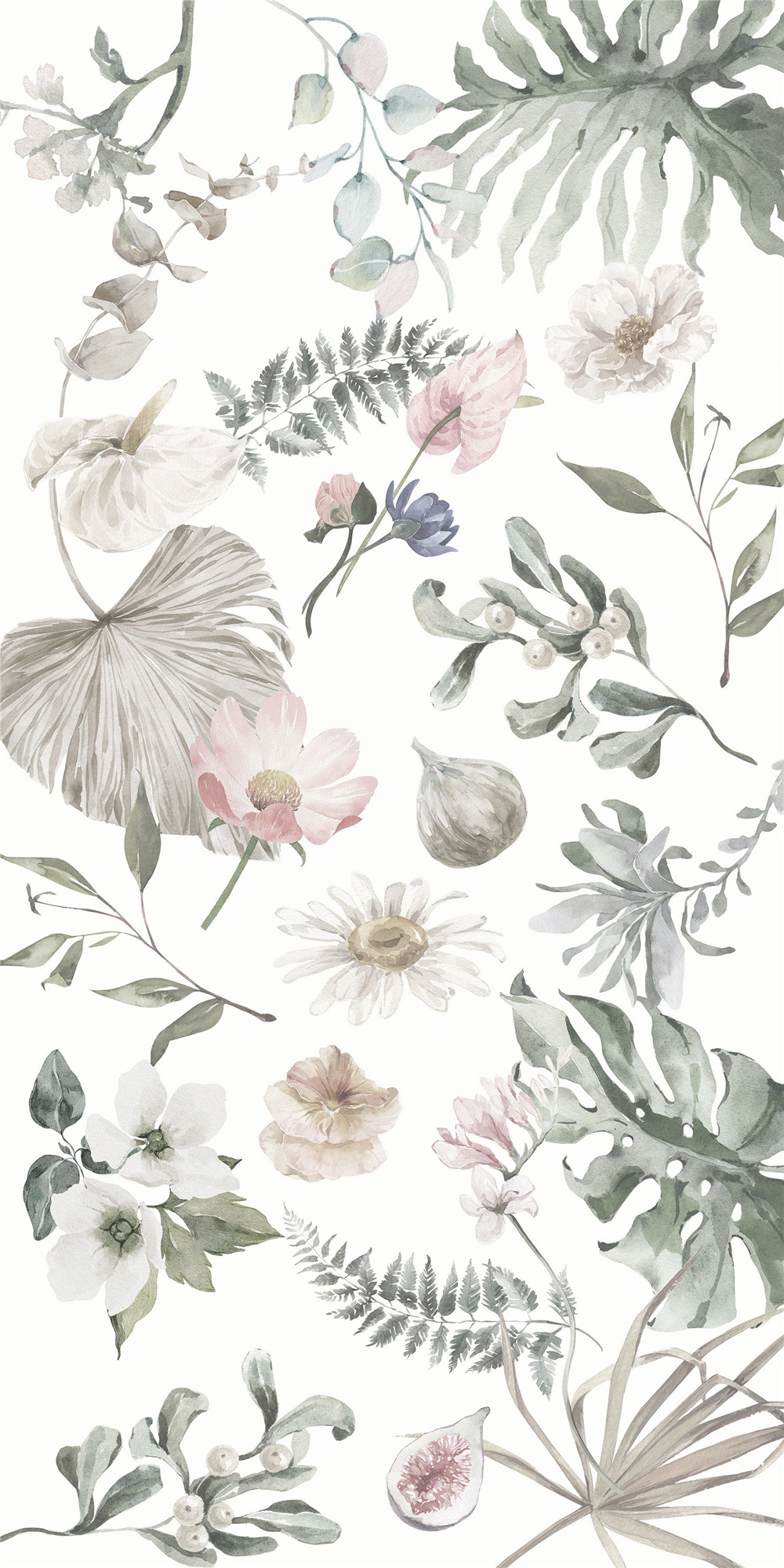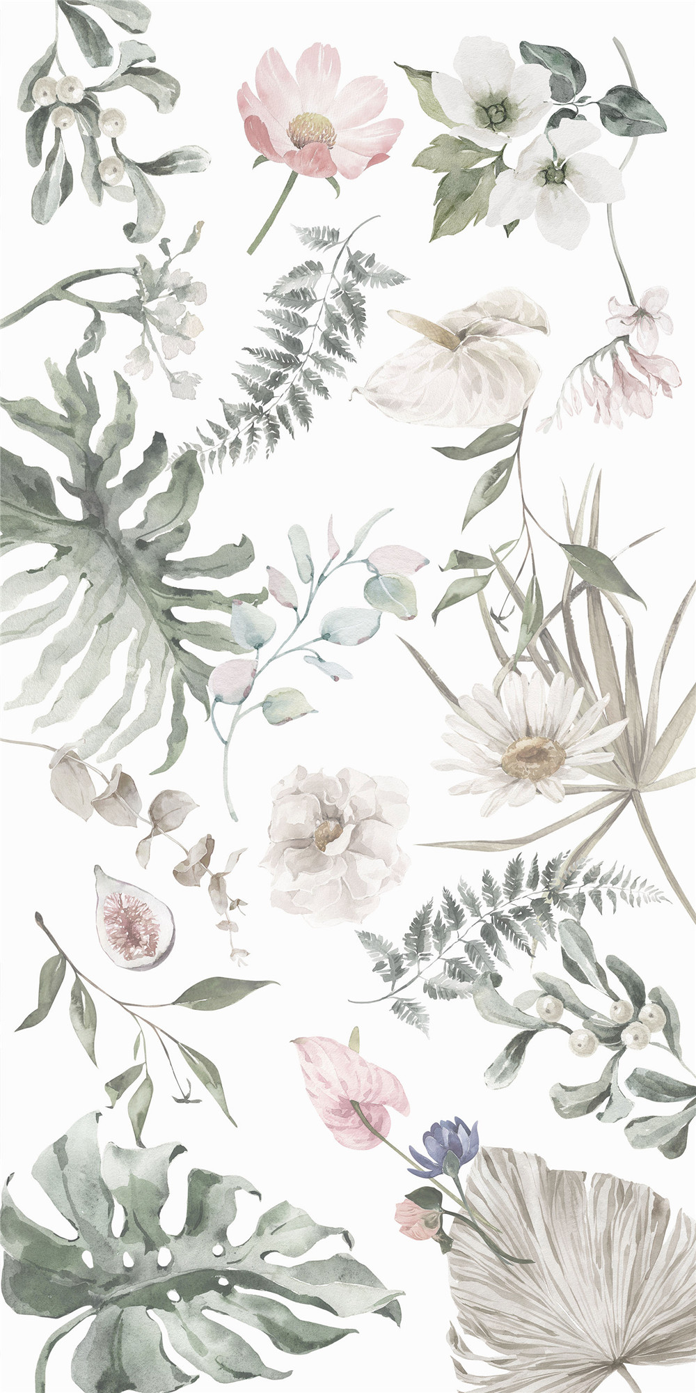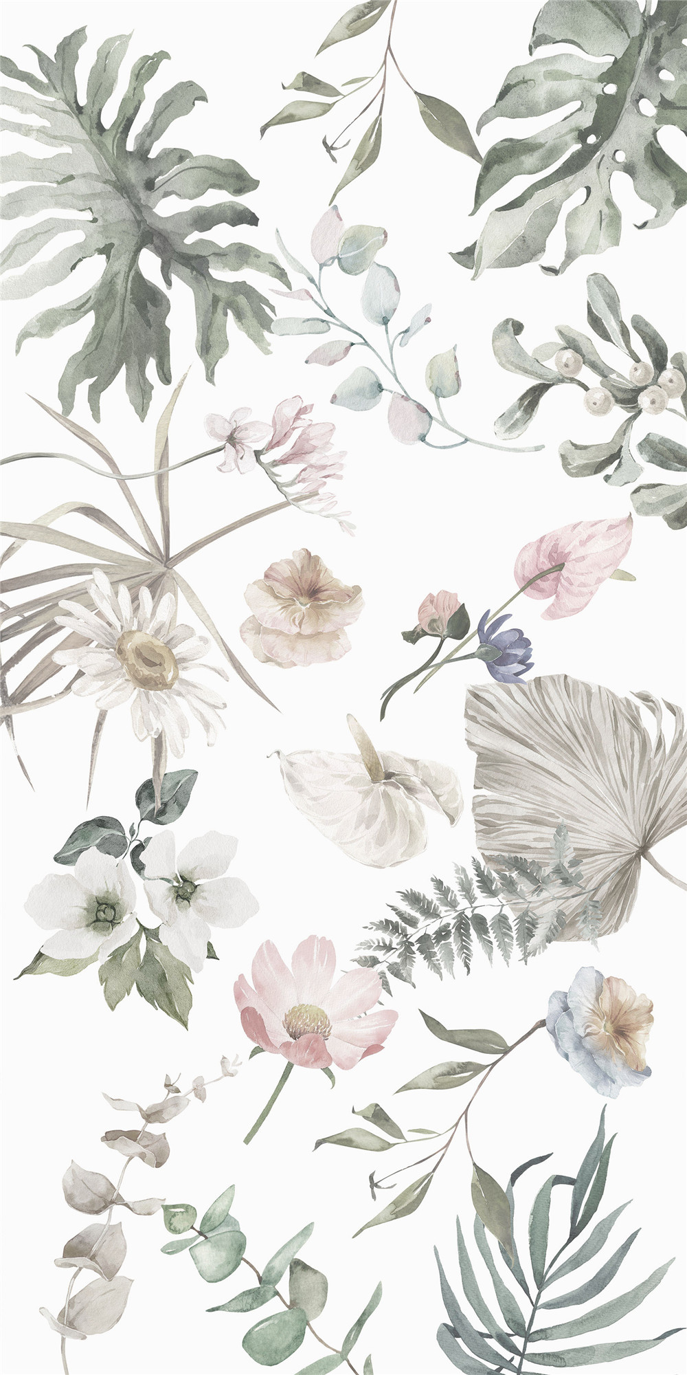舒展的芭蕉葉、豐腴的花卉與蕨類交織的蔥蘢,在淺白米色的畫布上,將熱帶雨林的蓬勃生機(jī)與度假庭園的浪漫慵懶,一并帶入日??臻g,勾勒出一幅永不落幕的盛夏畫卷。