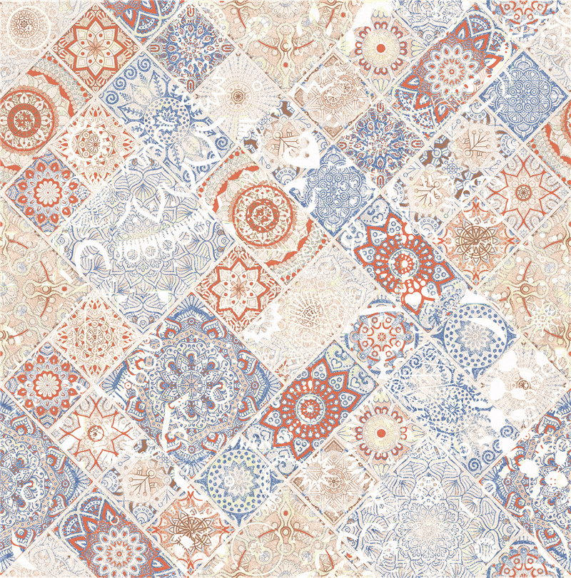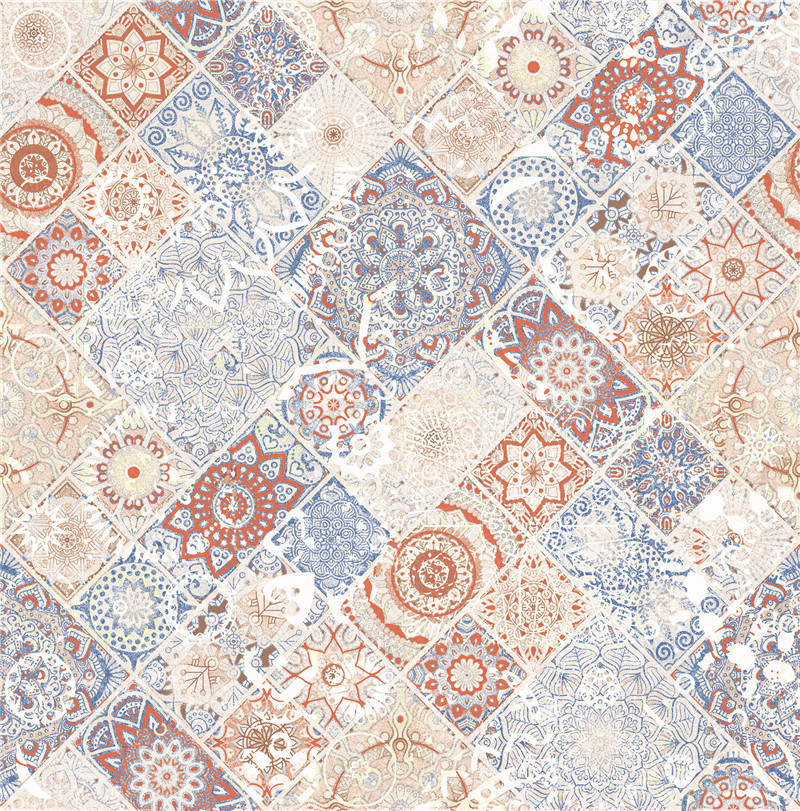 來自敦煌藝術(shù)的瑰麗色彩與波西米亞的自由浪漫,紅藍(lán)菱形交替鋪設(shè),延伸視覺動線,融合了 自由奔放的吉普賽精神、繁復(fù)的花磚美學(xué)以及霓虹般的彩色碰撞,打造一個充滿異域風(fēng)情又富 有藝術(shù)感的居住空間。