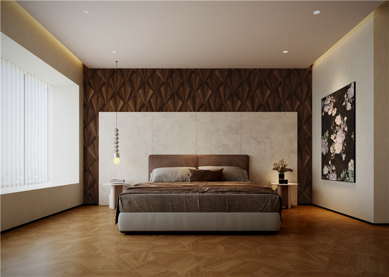 以自然木紋為靈感,融合幾何美學(xué)與工藝巧思,通過(guò)菱形拼接的方式,構(gòu)建出富有韻律的立體視覺(jué)效果,既有木材的溫暖質(zhì)樸,又因幾何造型的介入,增添了現(xiàn)代設(shè)計(jì)的精致感。