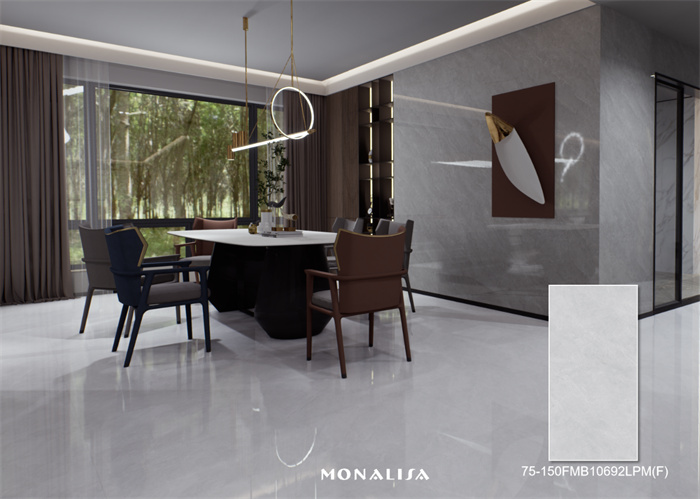 900×1800mm大連紋密縫柔拋陶瓷大板可以說(shuō)是蒙娜麗莎瓷磚集結(jié)設(shè)計(jì)美、功能美與應(yīng)用美于一體的產(chǎn)品,在實(shí)現(xiàn)大連紋與密縫的同時(shí),采用獨(dú)有止滑高新技術(shù),在實(shí)現(xiàn)表面質(zhì)感平整細(xì)膩下,干、濕兩種地面情景中,依然擁有高止滑性能優(yōu)勢(shì)。
