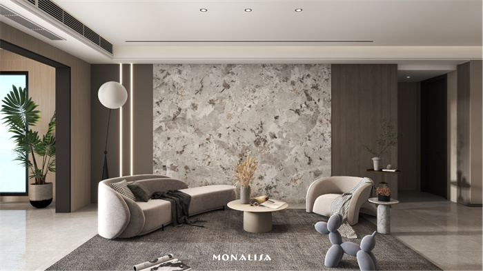 仿石、仿木、仿布等具象化的設(shè)計(jì)一直是瓷磚產(chǎn)品設(shè)計(jì)的主題。而蒙娜麗莎則希望在刻錄自然的同時(shí),賦予產(chǎn)品獨(dú)特的靈魂。