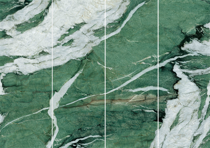 滿目綿延的黛色山戀,是大自然最奢華的留筆,隨著流云蒼翠紋理的延展,勾勒恬靜靈動的韻律美感,將空間高級感極致詮釋。4面一組左右密縫無限連紋設(shè)計,更是讓自然之美突破單片巖板的尺寸局限,讓天然奢石的極致美感,在空間肆意延伸,通往夢寐以求的奢雅體驗。