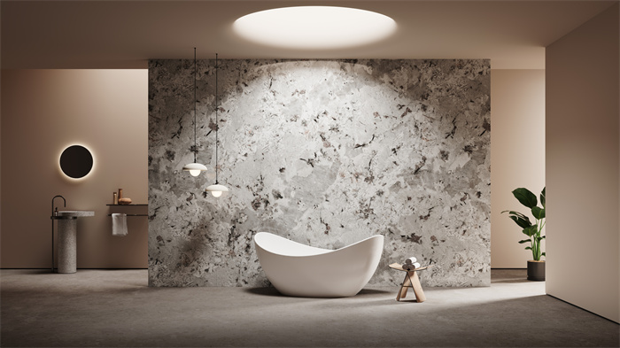 通過高精技術(shù)設(shè)備解析大理石通透結(jié)晶的肌理層次和色相色調(diào)的構(gòu)成,由國家級高尖科研平臺歷經(jīng)多年匠心研發(fā)設(shè)計,再運用獨特的肌理再造技術(shù),將這種自然之美的復(fù)刻與創(chuàng)造做到極致