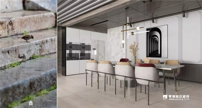 1200×600(mm)大規(guī)格尺寸,空間表現(xiàn)力更強(qiáng),人們內(nèi)心的歷史感、滄桑感、懷舊感,在一片片瓷磚上不經(jīng)意流露出來。