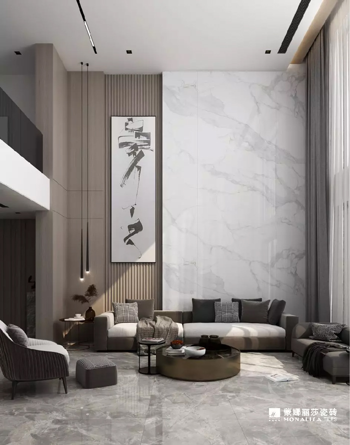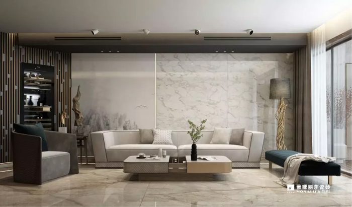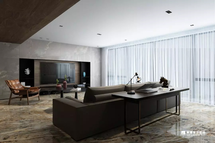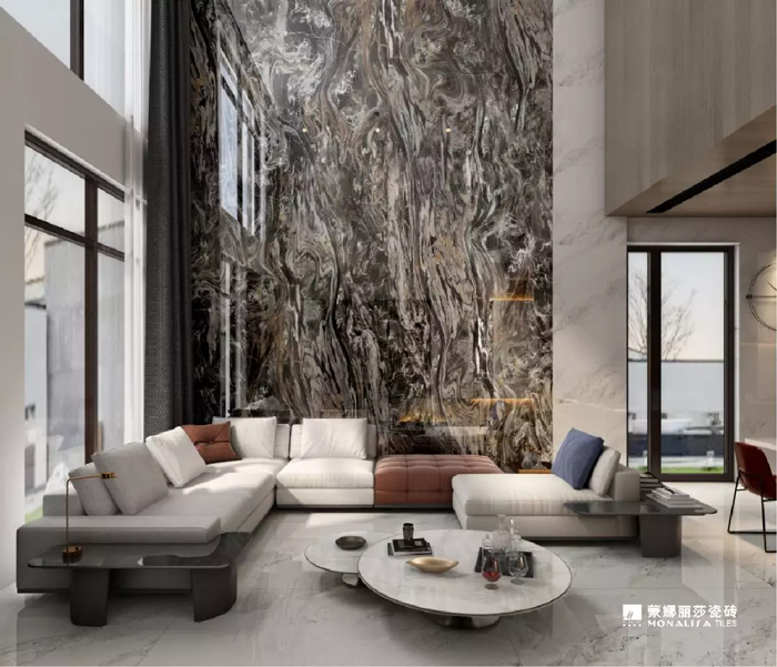 流動空間,即不把空間作為一種消極靜止的存在,而是把它看做一種生動的力量。奉行空間藝術的精髓:「復刻自然」與「流動空間」,蒙娜麗莎3600mm×1600mm羅馬超石代在創(chuàng)規(guī)格之大時,高度復刻自然流動的大理石紋理。