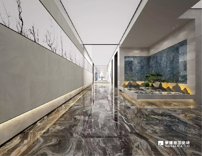 星級酒店,高級會所等場所對于瓷磚紋理的藝術追求更是極致。敦煌飛天以游弋灑脫的紋理,營造出的輕奢氣質,是高檔會所的不二選擇。