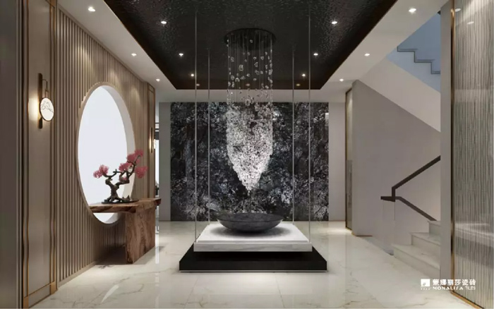 在工裝和家裝應用方面,新鉆石流星在別墅、大戶型、酒店大堂、會所等大面積鋪地時,整個視覺效果是非常震撼的。