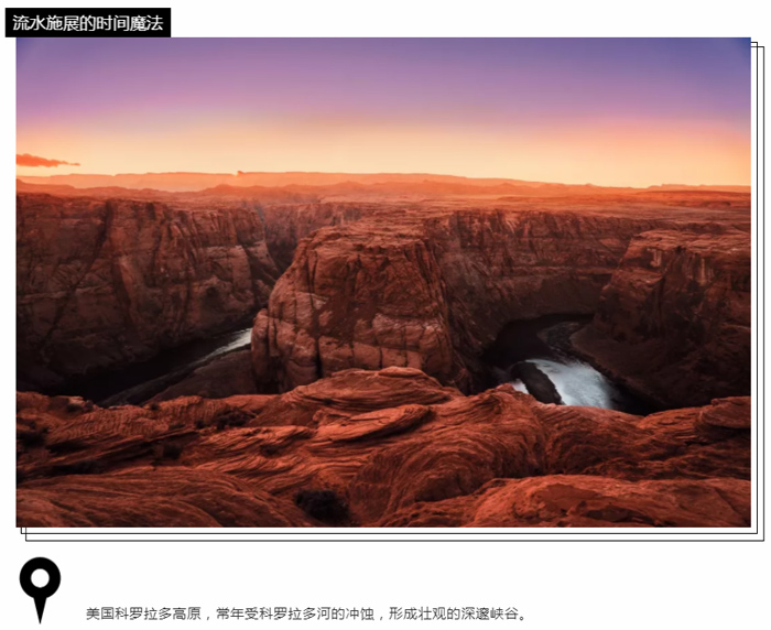 時間是怎么劃過地球的,沒有什么比大自然更有說服力了。我們腳下的大地、凸起的山峰、凹陷的峽谷,都是時間的無限能量轉(zhuǎn)化而來。山巒起伏,峽谷柔情,景色之美,讓人流連。是山水的景色將我們俘虜嗎?不,是時間的景色。