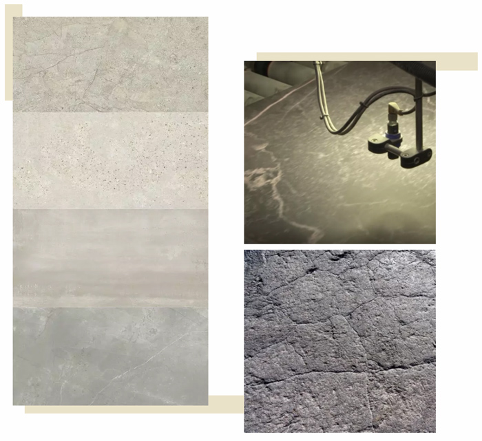 引進意大利原創(chuàng)設(shè)計理念,表面采用高清影像和3D噴墨打印技術(shù),結(jié)合歐洲先進數(shù)碼膠水干粒技術(shù),圖案肌理還原石材經(jīng)歷風霜雨雪打磨后的天然美感。