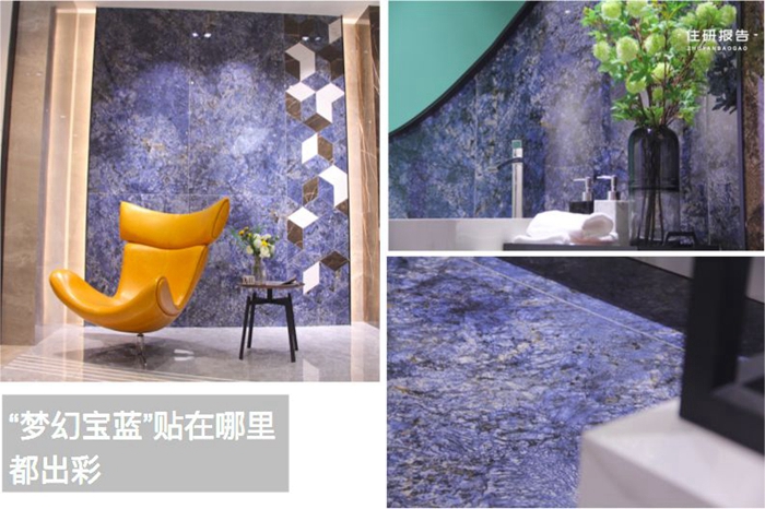 奪目的寶藍(lán)色,原以為很難做裝飾搭配,但現(xiàn)場(chǎng)可以看到,只要抓住一小面積的天地,這片浪漫深邃的紋理,瞬間賦予空間寶石般的精致華麗氣質(zhì),讓人挪不開視線。