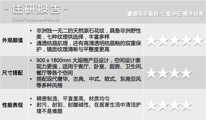 其獨(dú)特的肌理,仿佛在訴說著光陰的故事。所以石材元素一直是家裝界的經(jīng)典、設(shè)計(jì)師的寵兒,這些年各大品牌也在不斷創(chuàng)新,探索更多玩法。本次住研報(bào)告團(tuán)隊(duì)受邀到陶瓷上市公司蒙娜麗莎集團(tuán),測(cè)評(píng)一款新品——七星珍石系列,據(jù)說是精選非洲獨(dú)一無二的天然名貴稀有原石珍品,歷經(jīng)三年原創(chuàng)研發(fā)出來的。