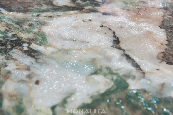 東方白,是極光掠過冰川,流光刻下一段浪漫的雪地詩行;藍(lán)金沙,是星河墜入深藍(lán)的沙漏,凝固的辰星閃爍著神秘而優(yōu)雅的光芒;里約白,將熱帶晨光融成琥珀,在石紋里封印不熄的盛夏;寶格麗,當(dāng)BVLGARI經(jīng)典紋理烙入巖層基因,奢石便擁有了高定珠寶的傲慢;菲尼克斯,在云母與石英的時空褶皺中,灑落一片古老而神秘的光輝;綠碧璽晶,灰色熔巖伏著翡翠礦脈的秘色,在巖層褶皺里續(xù)寫未央的星塵詩篇;霽紅疊翠,粗獷的赤紅大地上翠色涌動,交織出山河的熱烈與生機(jī);范思哲黑,在玄武巖的褶皺里暗涌星塵密碼,訴說著遠(yuǎn)古的神話與未來的幻想。每一款七星珍巖,是藝術(shù)與自然的完美融合,它們講述著關(guān)于光與影、時間與空間的故事,引領(lǐng)著人們走向一個更加高階、更加隱奢的生活境界。