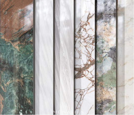 2024年,蒙娜麗莎集團(tuán)研發(fā)團(tuán)隊針對天然大理石“浮光若金”的光學(xué)現(xiàn)象展開系統(tǒng)性研究,通過智能數(shù)控噴墨定位技術(shù)、多維光譜分析技術(shù)、特殊釉料配方等的創(chuàng)新疊加,突破性實(shí)現(xiàn)精準(zhǔn)定位的多彩炫光效果在陶瓷板磚上的可控呈現(xiàn)。經(jīng)廣東省輕工業(yè)聯(lián)合會組織的科技成果鑒定組現(xiàn)場論證,該項(xiàng)技術(shù)不僅完美復(fù)現(xiàn)天然石材的靈動光變特性,更在顯色飽和度與光影層次感方面超越傳統(tǒng)工藝,高度還原天然奢石的晶質(zhì)感和色彩飽和度,經(jīng)權(quán)威鑒定整體技術(shù)達(dá)到國際領(lǐng)先水平,為高端空間設(shè)計提供了兼具藝術(shù)價值與科技內(nèi)涵的裝飾材料。