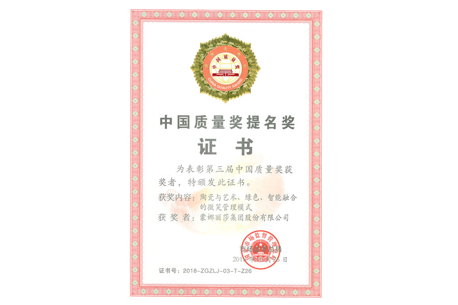 中國(guó)質(zhì)量獎(jiǎng)提名獎(jiǎng)